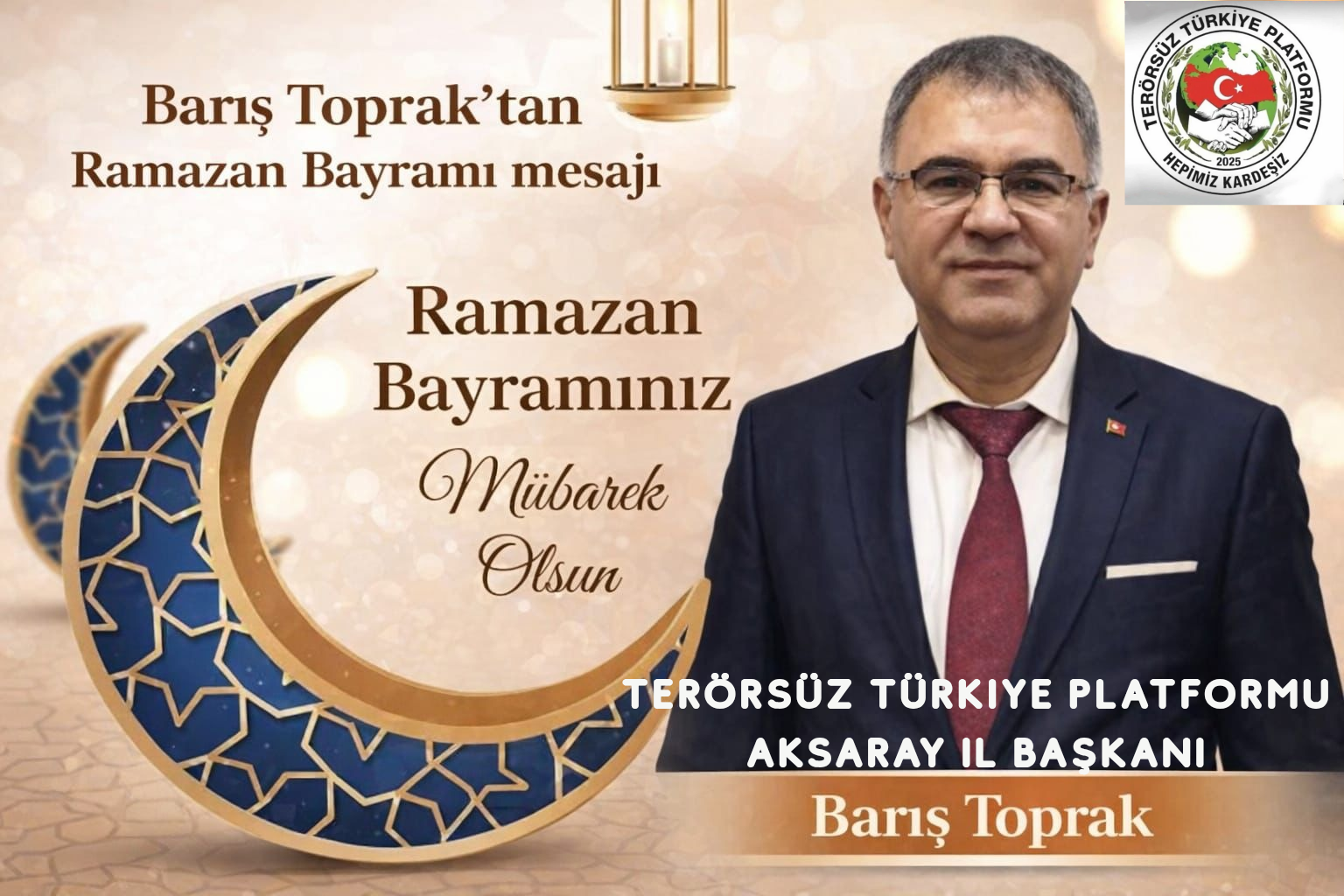 Terörsüz Türkiye Platformu Aksaray İl Başkanı Barış Toprak, Ramazan Bayramı Dolayısıyla Bir Kutlama Mesajı Yayımladı.